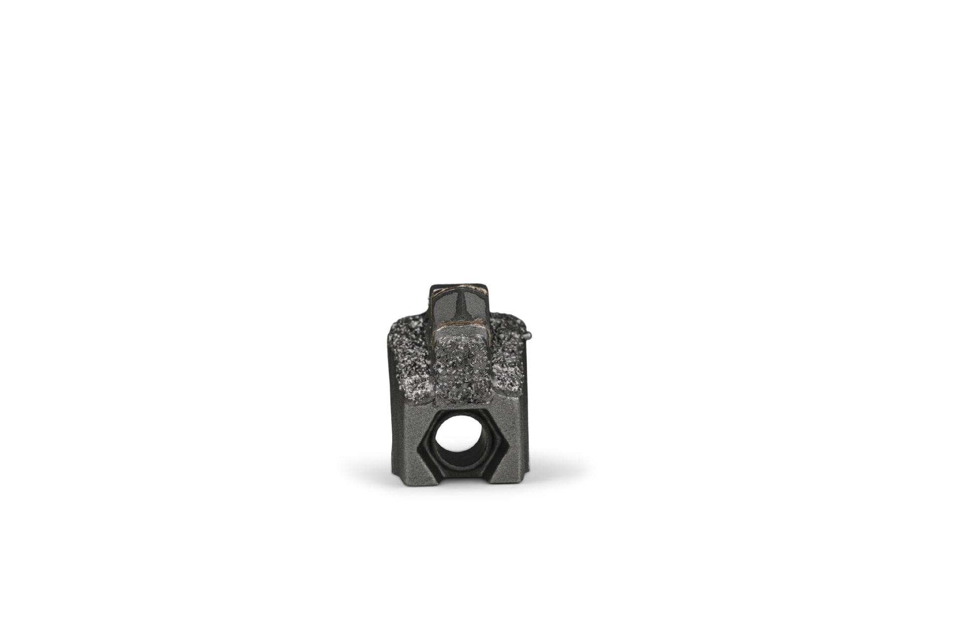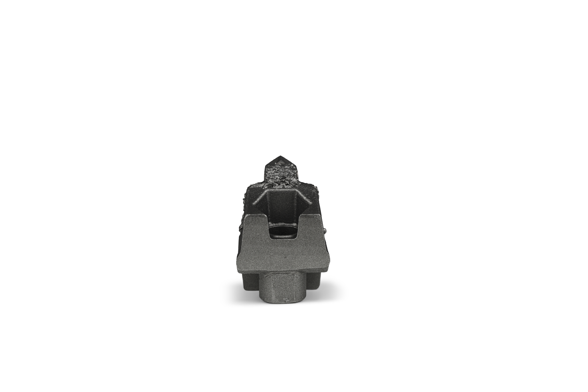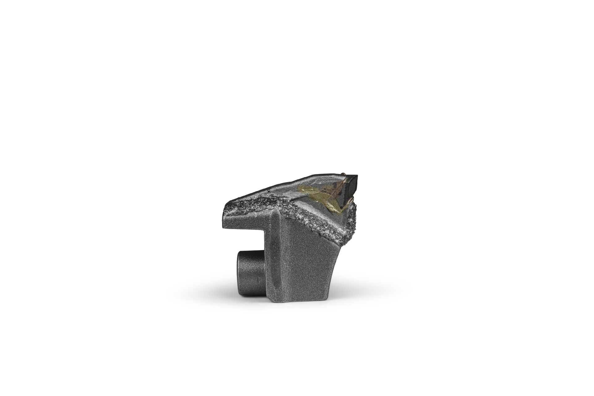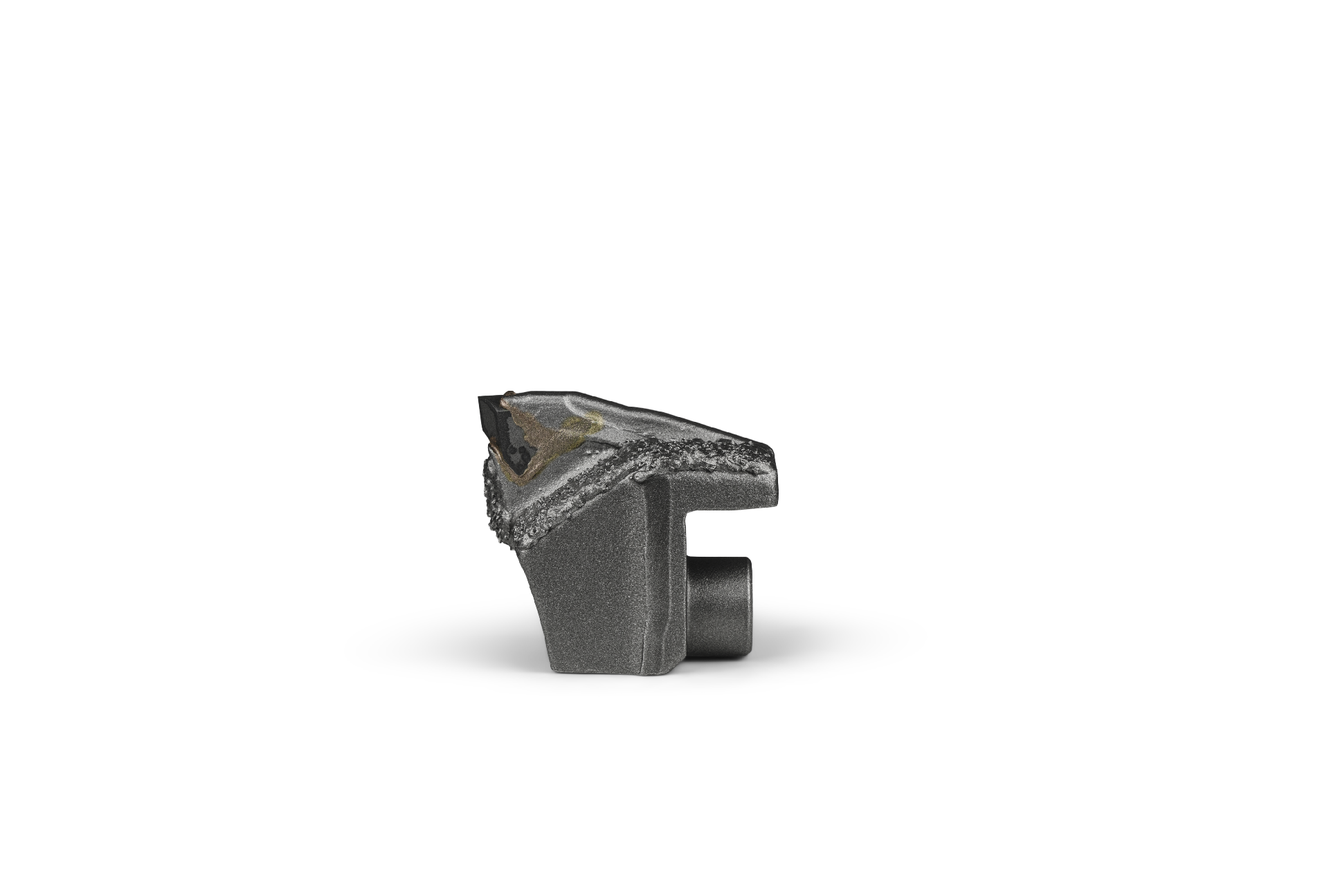 HRT® tool fitting FAE mulchers (alternative to type I). Tool with one carbide tip and three additional layers of WearShield® carbide overlay for extended life-time. Tool with one M20 bolt hole.