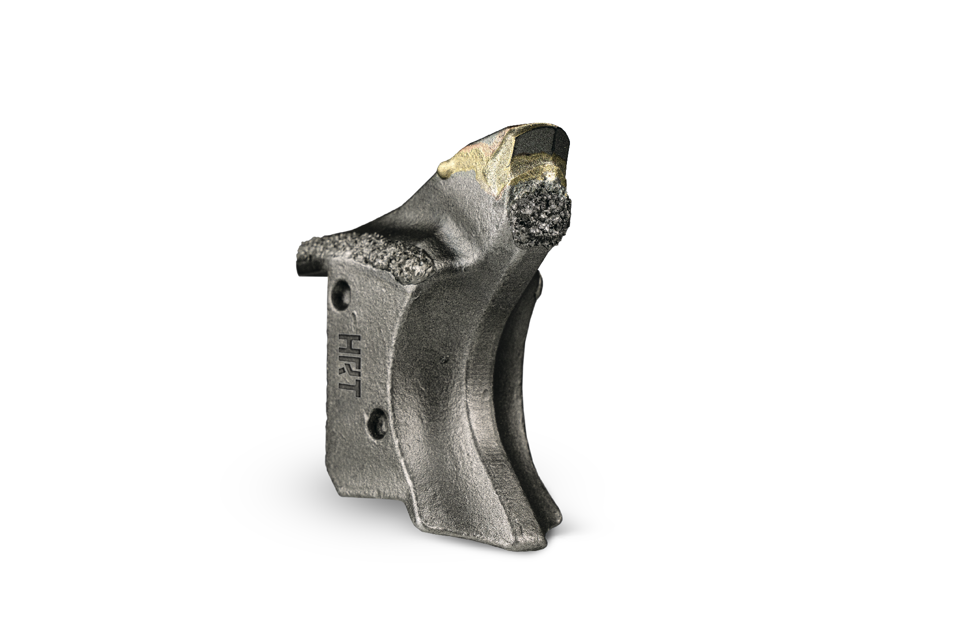 HRT® tool fitting FAE mulchers (alternative to type A/3). Tool with one carbide tip and an additional layer of WearShield® carbide overlay behind the carbide tip for extended life-time. Tool with two M16 fine threaded holes.