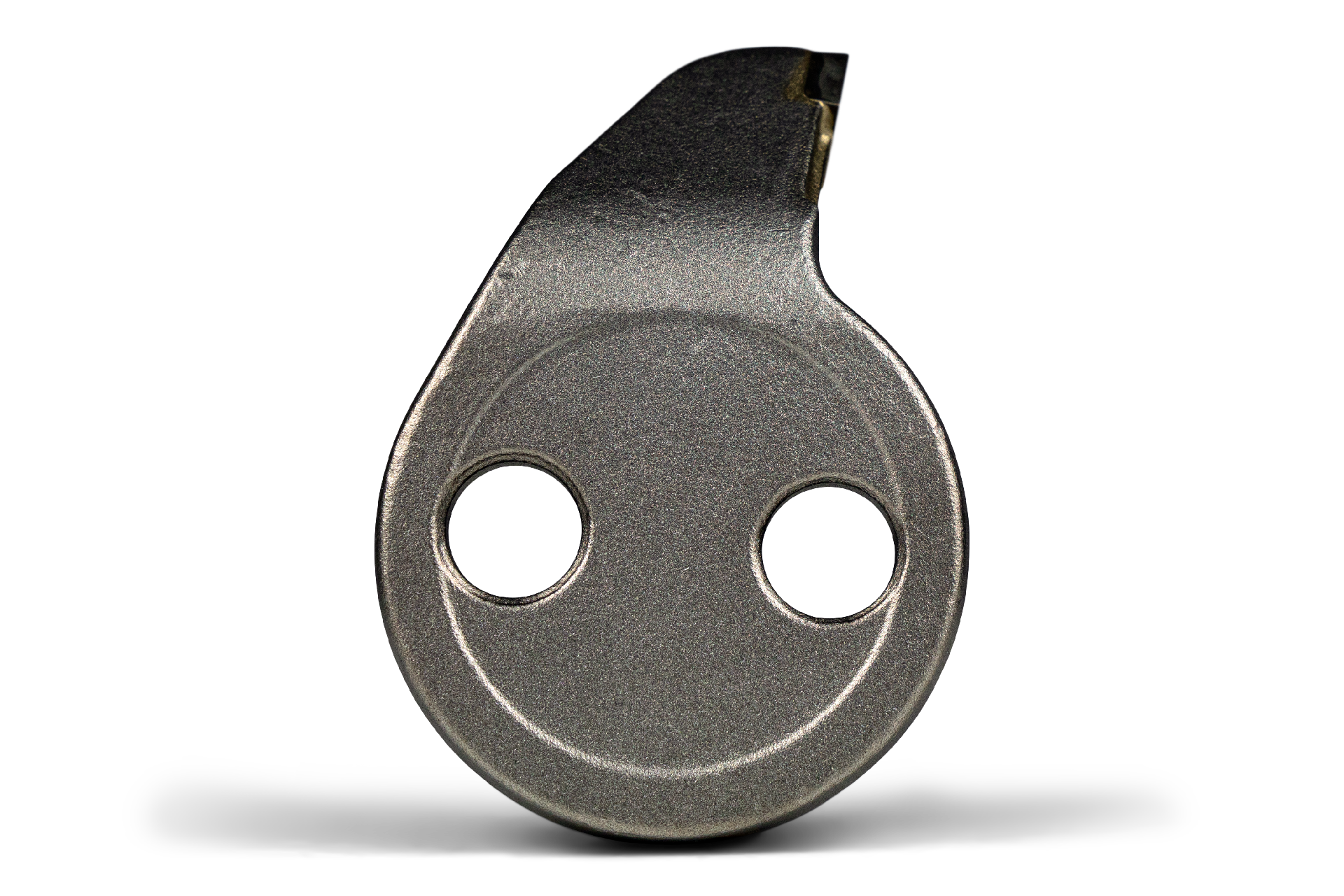 HRT® tool fitting stump grinders from Rayco, FSI, Carlton, and Vermeer. Right tool with two carbide tips and two mounting holes.