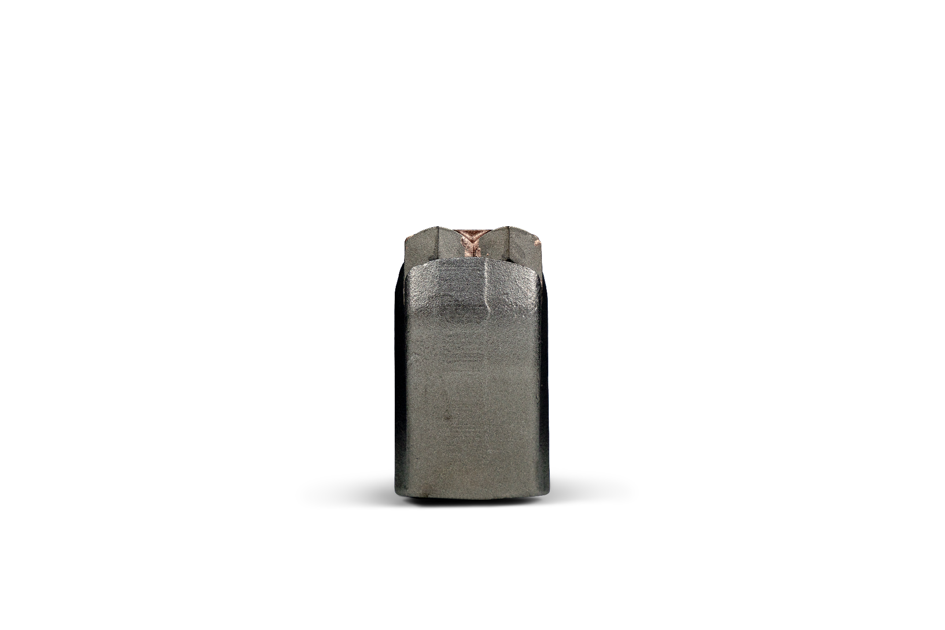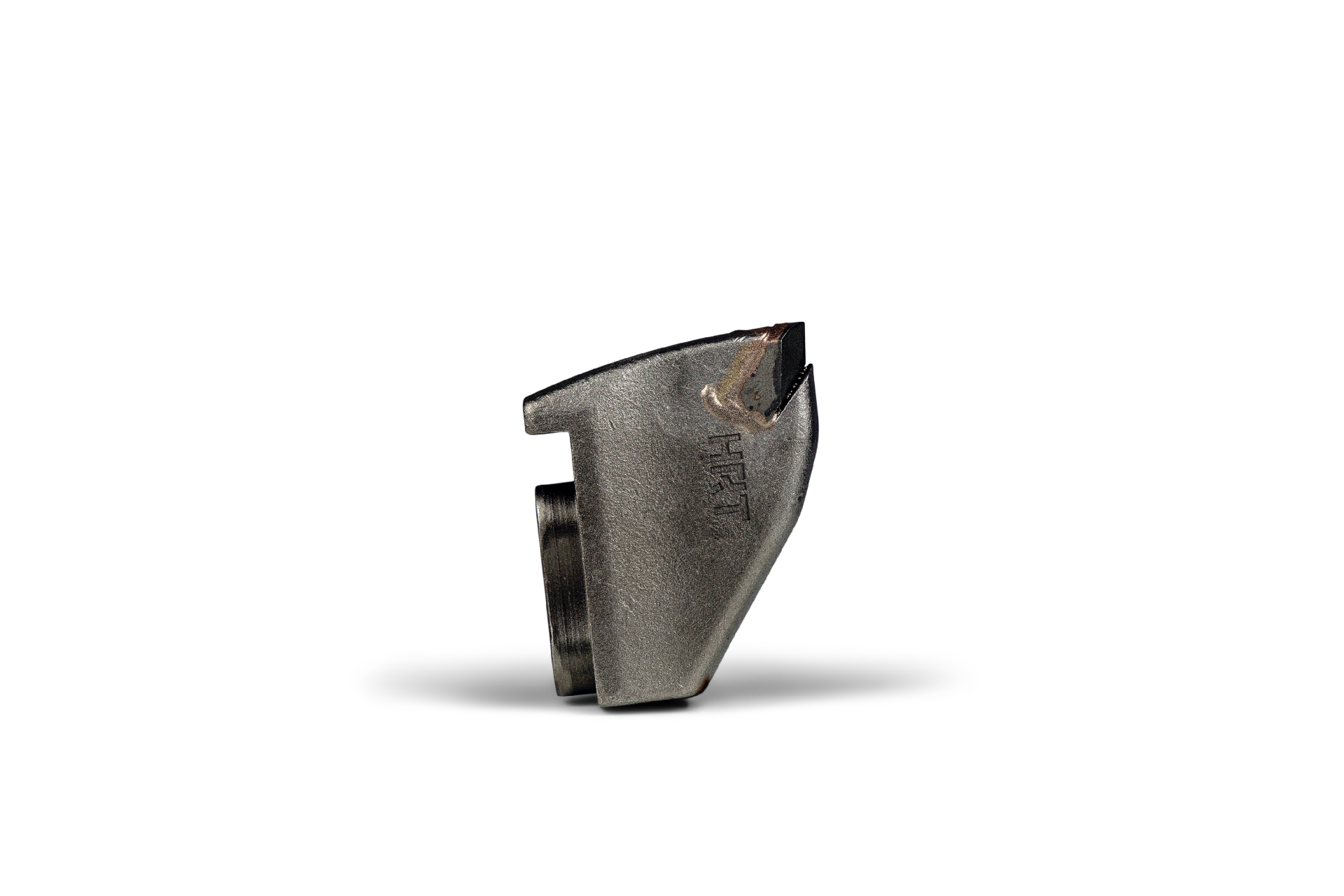 HRT® tool fitting TMC Cancela mulchers (alternative to type F03). Tool with two embedded carbide tips and two M16 bolt holes.