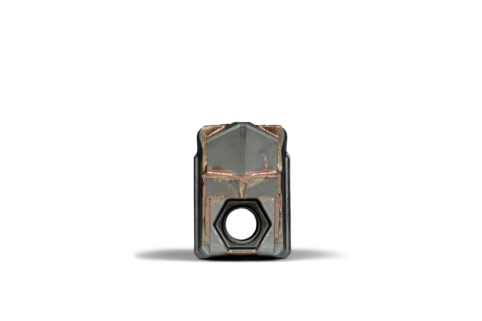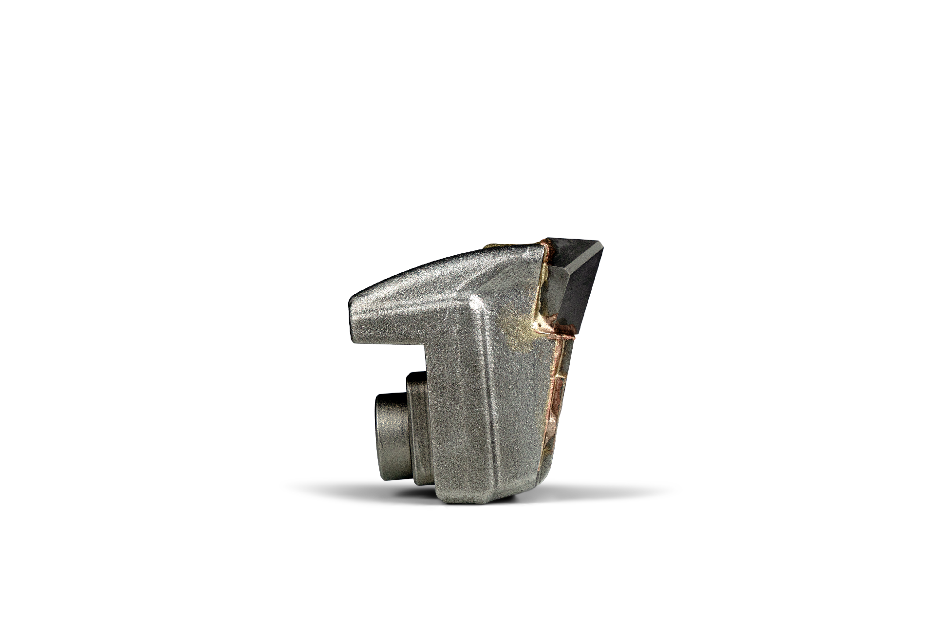 HRT® tool fitting TMC Cancela mulchers (alternative to type 19). Tool with three embedded carbide tips and one M20 bolt hole.